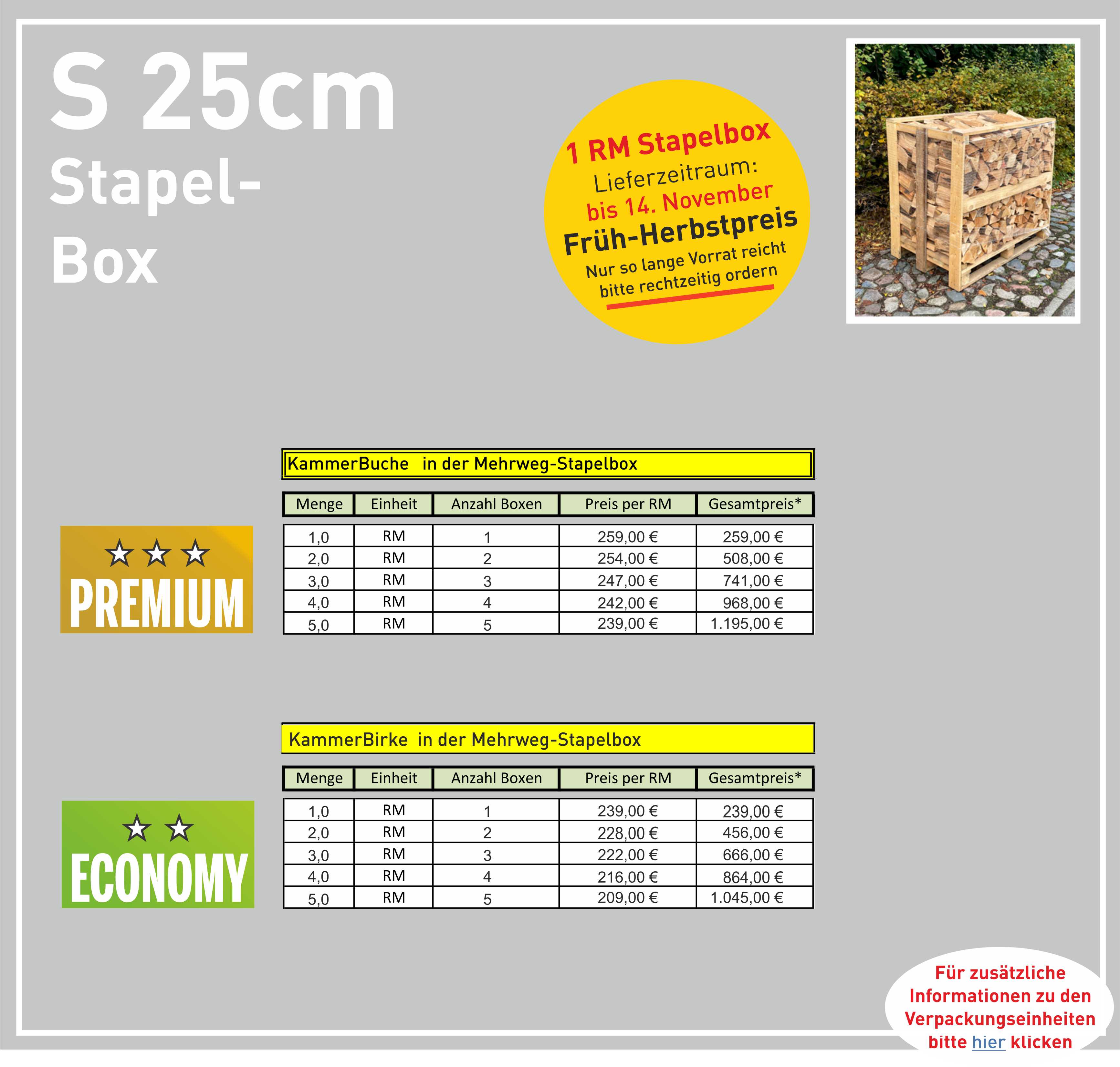 Unsere Kaminhölzer Größe S haben eine Scheitlänge von 25 cm (+-3 cm).